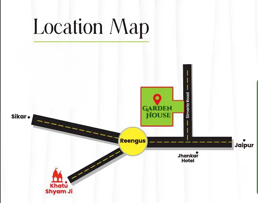 Located just a short drive from the renowned Khatu Shyam Ji Temple, the development blends spiritual Calm With Luxurious Living. With Excellent Connectivity to Key routes Such as NH-52, Shimarla Road, and Sikar Road, Garden House Ensures Effortless Access to Surrounding Towns and Cities. The region’s Spiritual Significance also brings a high daily footfall, making Ringas a hub of Potential Business Opportunities.